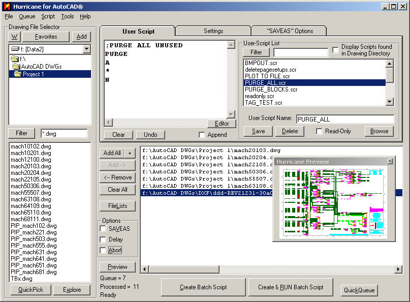 When using this in conjunction with the "filter" and "FileLists" button, you can bypass the AutoCAD file selector for added speed. Just ALT-TAB and select the next file for editing! (For interactive screenshot, please click here)